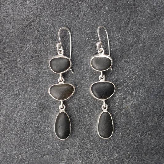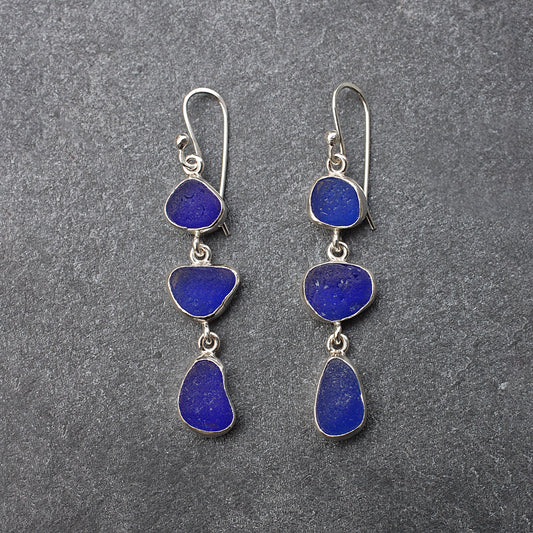 Sea Glass Three Drop Earrings in Cobalt Blue
