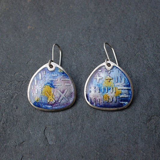 Ombre Lavender to Purple Silver and Enamel Earrings